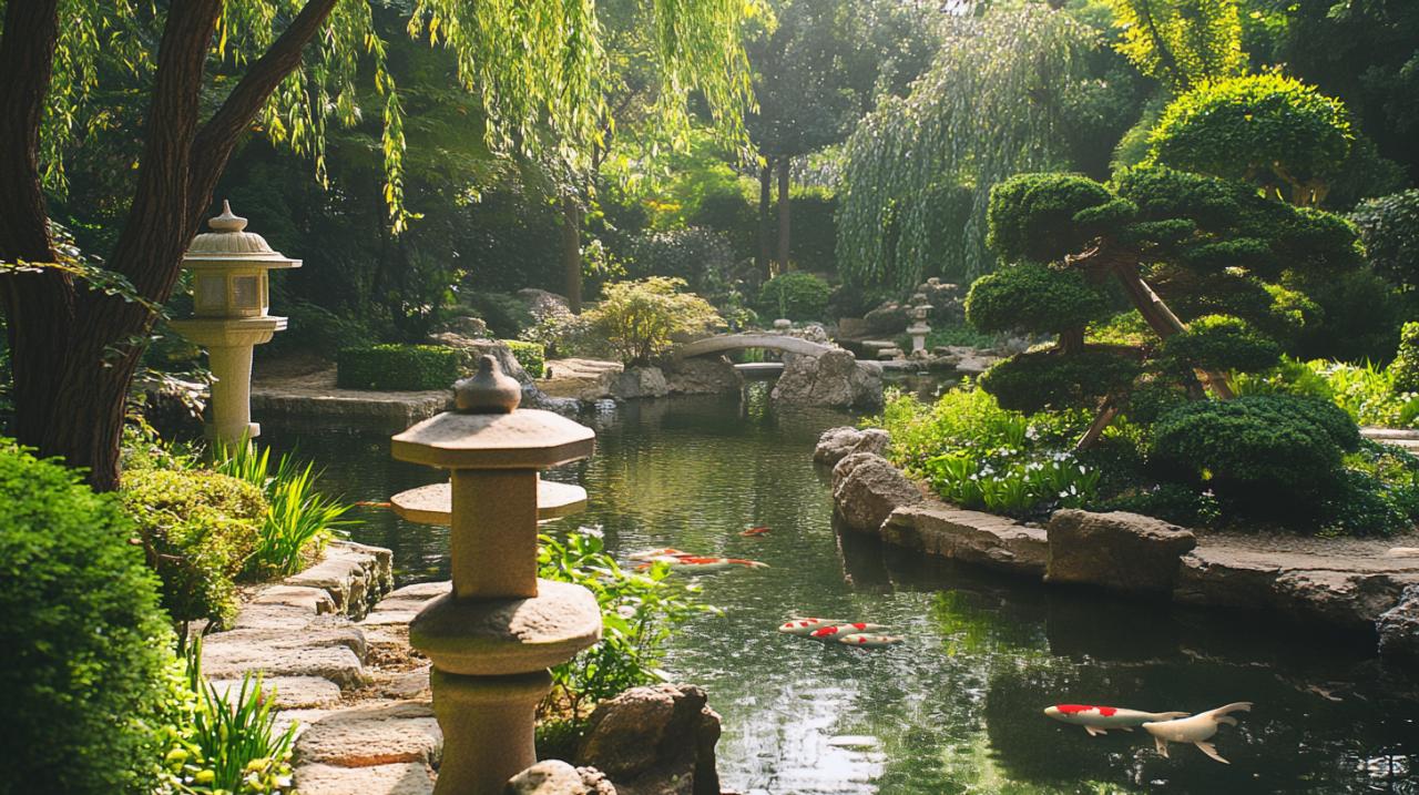 Un auténtico jardín japonés se construye sobre principios milenarios que trascienden lo meramente estético para convertirse en espacios de meditación y conexión espiritual. Entre los componentes esenciales destacan los puentes curvados que simbolizan el tránsito hacia otro plano de consciencia, las linternas de piedra que iluminan el camino tanto físico como espiritual, y las puertas de dragón que marcan entradas ceremoniales. Las rocas cuidadosamente seleccionadas representan montañas en miniatura, mientras que la arena o grava rastrillada simula el flujo del agua. Los árboles ornamentales como los arces japoneses, que en otoño despliegan espectaculares tonalidades rojas y naranjas, junto con los ginkgos que lucen su dorado característico, completan una paleta cromática que cambia con las estaciones y recuerda la naturaleza efímera de la existencia.